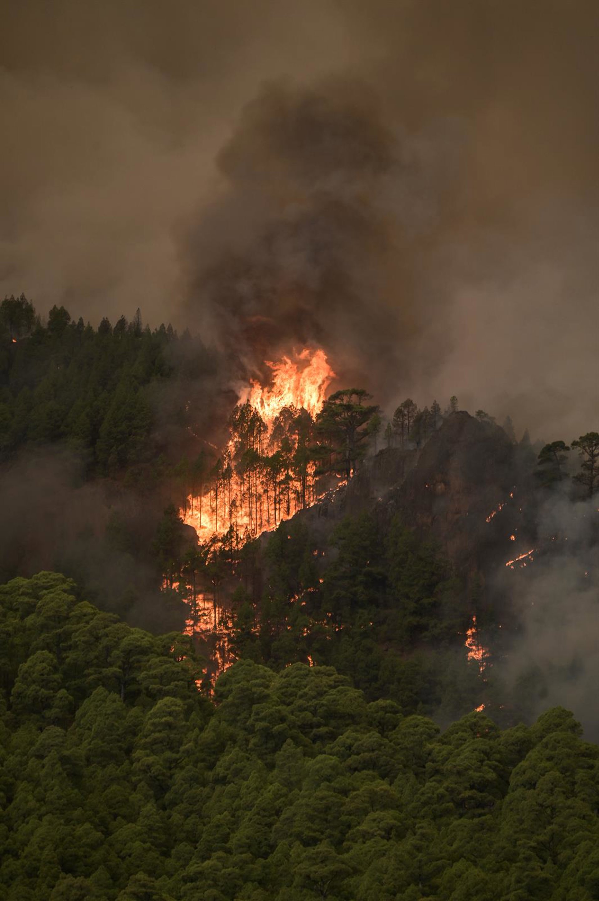 Llamas, en el monte, de un incendio forestal, a 16 de agosto de 2023, en Tenerife (España). Anoche se declaró un incendio forestal en Tenerife entre las localidades de Candelaria y Arafo. Lo que ha obligado a evacuar los municipios de Arrate, Chivisaye, - Europa Press
