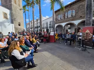 El consejero de Educación, Formación, Profesional, Actividad Física y Deportes del Gobierno de Canarias, Poli Suárez, junto con el alcalde de Santa Cruz de La Palma, Asier Antona, presentó este lunes en la Plaza de España de la capital palmera el proyecto pedagógico que su departamento ha diseñado con motivo de la 'LXX Bajada de la Virgen de los Reyes'.