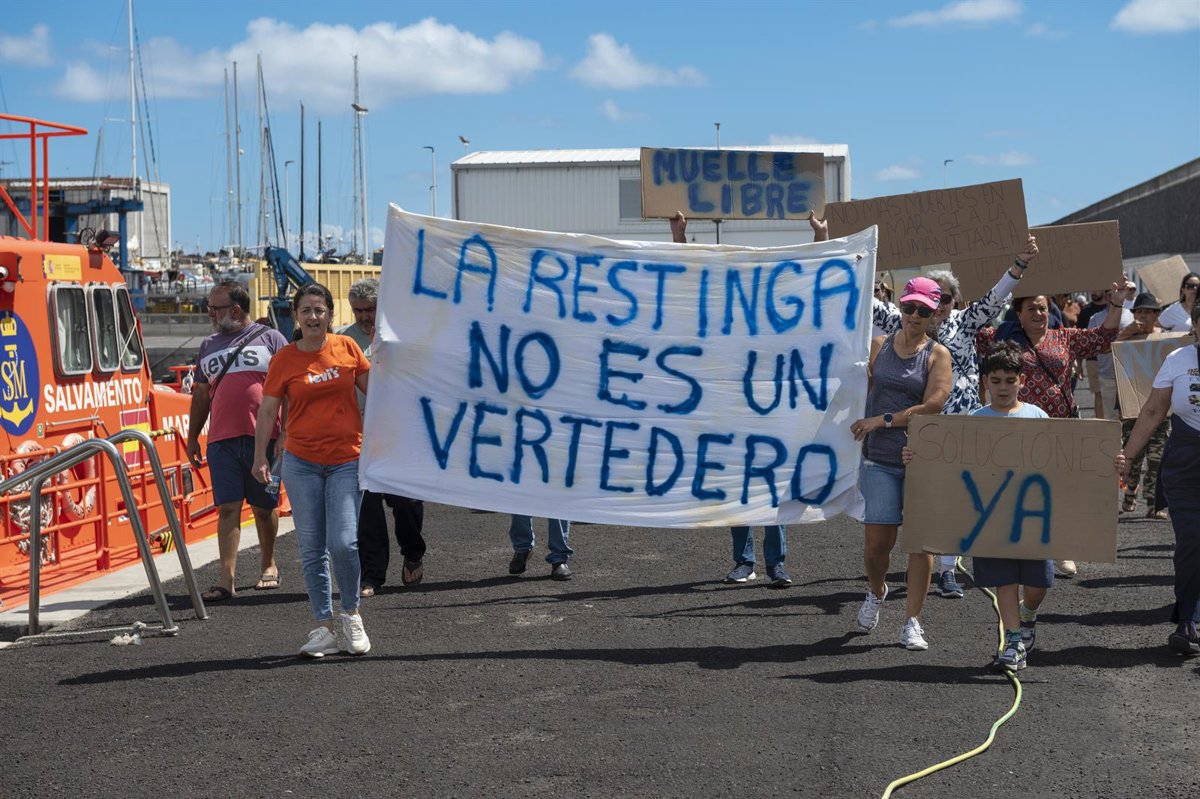 Varias personas durante una manifestación en contra de que instalaciones de acogida de personas migrantes en el puerto de La Restinga - Antonio Sempere - Europa Press