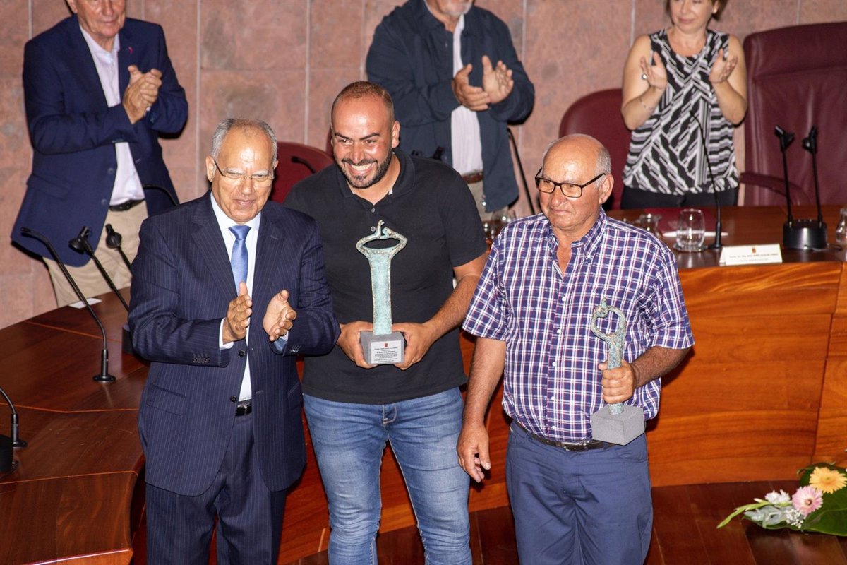 Los reconocidos maestros impulsores de su llegada a los centros educativos, Isidro Ortiz y Eugenio Darias, junto a Sebastián Vera y David Vera, pastores que aún hacen uso de él en su tareas diarias, recibieron la distinción de la mano del presidente del Cabildo, Casimiro Curbelo.