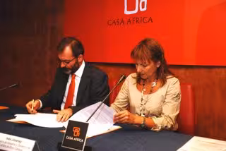 Gran Canaria Moda Cálida abrirá sus puertas a África de la mano de Casa África, después de que director general del consorcio público, Ricardo Martínez Vázquez, y la consejera de Industria y Comercio del Cabildo de Gran Canaria, Inés Jiménez, firmaran esta mañana un convenio de colaboración por el que el programa insular de fomento de la industria textil contará con un diseñador africano invitado en las actividades de este año.