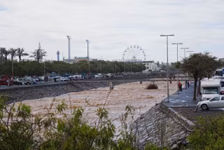 Barranco de Maspalomas durante el paso de la borrasca Therese, a 24 de marzo de 2026, en Gran Canaria, Canarias (España). Agaete mantiene activo su dispositivo de emergencia y pide a la población extremar la precaución, evitando barrancos, zonas inundable - Europa Press Canarias - Europa Press