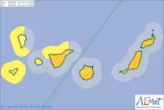 Gran Canaria, Tenerife, Lanzarote y Fuerteventura estarán este jueves en aviso naranja (riesgo importante) durante el día por fuertes lluvias y tormentas, mientras que el resto de las Islas Canarias se encontrarán en aviso amarilla (riesgo) por lluvias, tormentas y olas, según la predicción de la Agencia Estatal de Meteorología (Aemet).