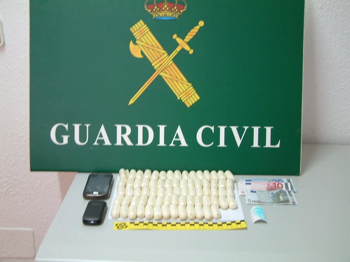 Así, los Guardias Civiles trasladaron al hombre a un centro hospitalario, donde expulsó un total 73 bellotas supuestamente de cocaína y con un peso total aproximado de 750 gramos de esta droga.