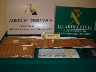 En un comunicado, la Benemérita explicó que el arrestado llevaba la droga escondida en el doble fondo de la maleta. Fue interceptado en la sala de llegadas tras el desembarco de un vuelo procedente de un país europeo, donde no daba razones coherentes de su visita a Tenerife.