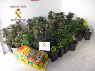 El detenido, cuyas iniciales corresponden con P.J.C., natural de Alemania, fue arrestado como presunto autor de un supuesto Delito de Cultivo o Elaboración de Droga, a la vez que la Guardia Civil aprehendió las 59 plantas de marihuana con respectivas macetas que se encontraban en el lugar.