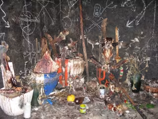 En el interior de un cuarto de aperos anexo a la vivienda fueron halladas cabezas de animales, supuestamente de cabras, baifos, conejos, así como restos de otros reptiles, diversas vasijas con amuletos y huesos de animales, etcétera, todo ello junto a una especie de altar idéntico al descrito por el compareciente. Los restos óseos encontrados quedaron bajo la custodia del médico forense para su análisis al instituto de Medicina Legal, área de antropología forense.