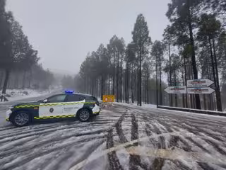 La Agrupación de Trafico de la Comandancia de Las Palmas trabaja en el cierre de los accesos a la cumbre de la isla de Gran Canaria debido a la existencia de placas de hielo en las carreteras por las bajas temperaturas que han afectado a esta zona durante las últimas horas.