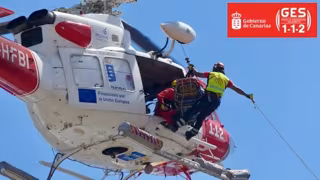 Hasta el lugar acudió un helicóptero de rescate del GES, cuyos efectivos rescataron al afectado para trasladarlo al aparcamiento del IES Yaiza, donde se realizó la transferencia a una ambulancia medicalizada del SUC.