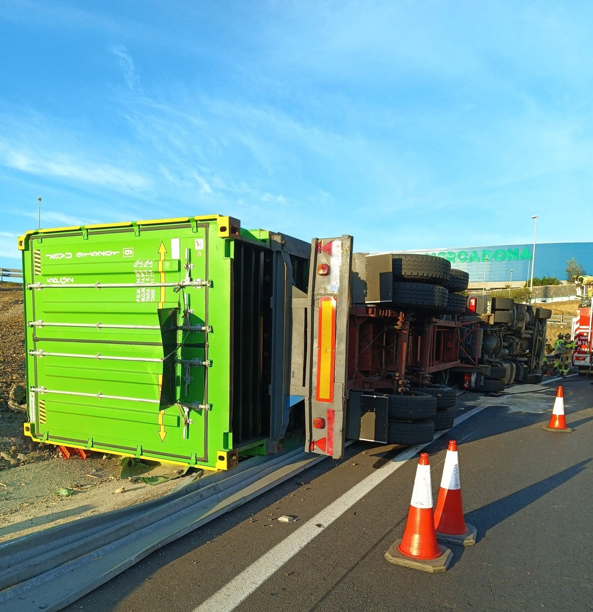 Un hombre ha resultado herido este lunes con policontusiones de carácter moderado tras el vuelco de un camión en la TF-2, en Santa Cruz de Tenerife.