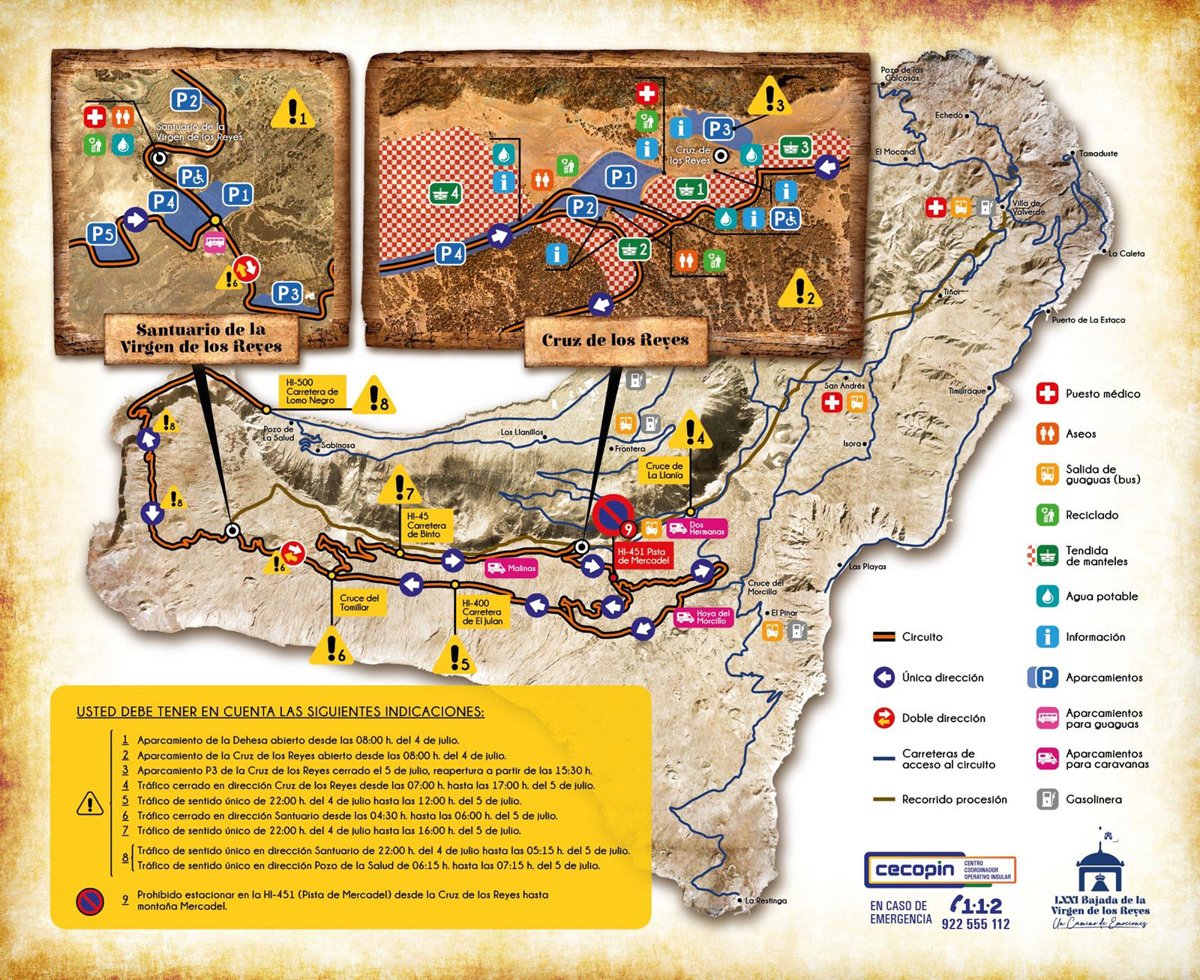 El acceso a la Cruz de Los Reyes por La Llanía se cerrará, desde las 07:00 horas del 5 de julio, pero permanecerá la posibilidad de acceso a la Cruz de Los Reyes a través de la carretera de Binto (HI-45) con sentido único desde el cruce de El Tomillar hasta la Cruz de Los Reyes.
