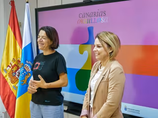 La consejera de Derechos Sociales, Igualdad, Diversidad y Juventud del Gobierno de Canarias, Noemí Santana, y la viceconsejera de Igualdad y Diversidad, Sylvia Jaén, presentaron este jueves la campaña publicitaria y el programa de actividades que ha organizado el Gobierno de Canarias en torno al próximo 28 de junio, 'Día del Orgullo LGTBI' y que este año saldrá de las islas capitalinas para centrar el acto institucional en El Hierro.