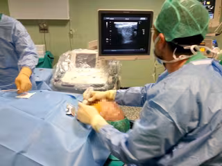 Para el doctor Julián Portero, especialista del servicio de Radiología Vascular Intervencionista, "este procedimiento realizado en quirófano y guiado con ecógrafo, permite conservar la glándula tiroides".