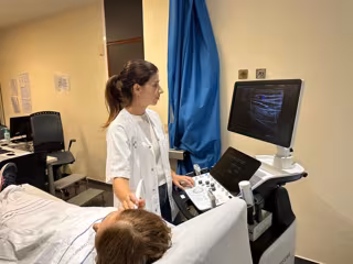 Momento de la realización de la ecografía para conocer la Arteritis de Células Gigantes en el Hospital de Gran Canaria Dr. Negrín, en Las Palmas de Gran Canaria - HOSPITAL UNIVERSITARIO DE GRAN CANARIA DR. NEGRÍN