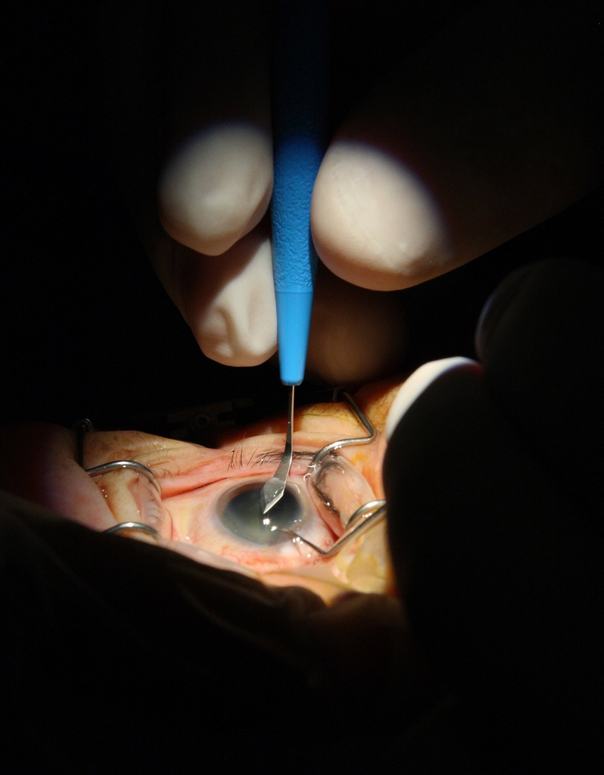 Las cataratas se producen por la opacificación total o parcial del cristalino del ojo y es la principal causa de pérdida de visión entre las personas mayores de 60 años. La cirugía de cataratas se realiza mediante facoemulsificación, que consiste en la destrucción mediante ultrasonidos del cristalino opaco del paciente y su sustitución por una lente intraocular transparente. El instrumental accede al ojo a través de dos pequeñas microincisiones en córnea clara que no suelen precisar puntos; todo ello, bajo anestesia tópica (en gotas) y previa dilatación pupilar.