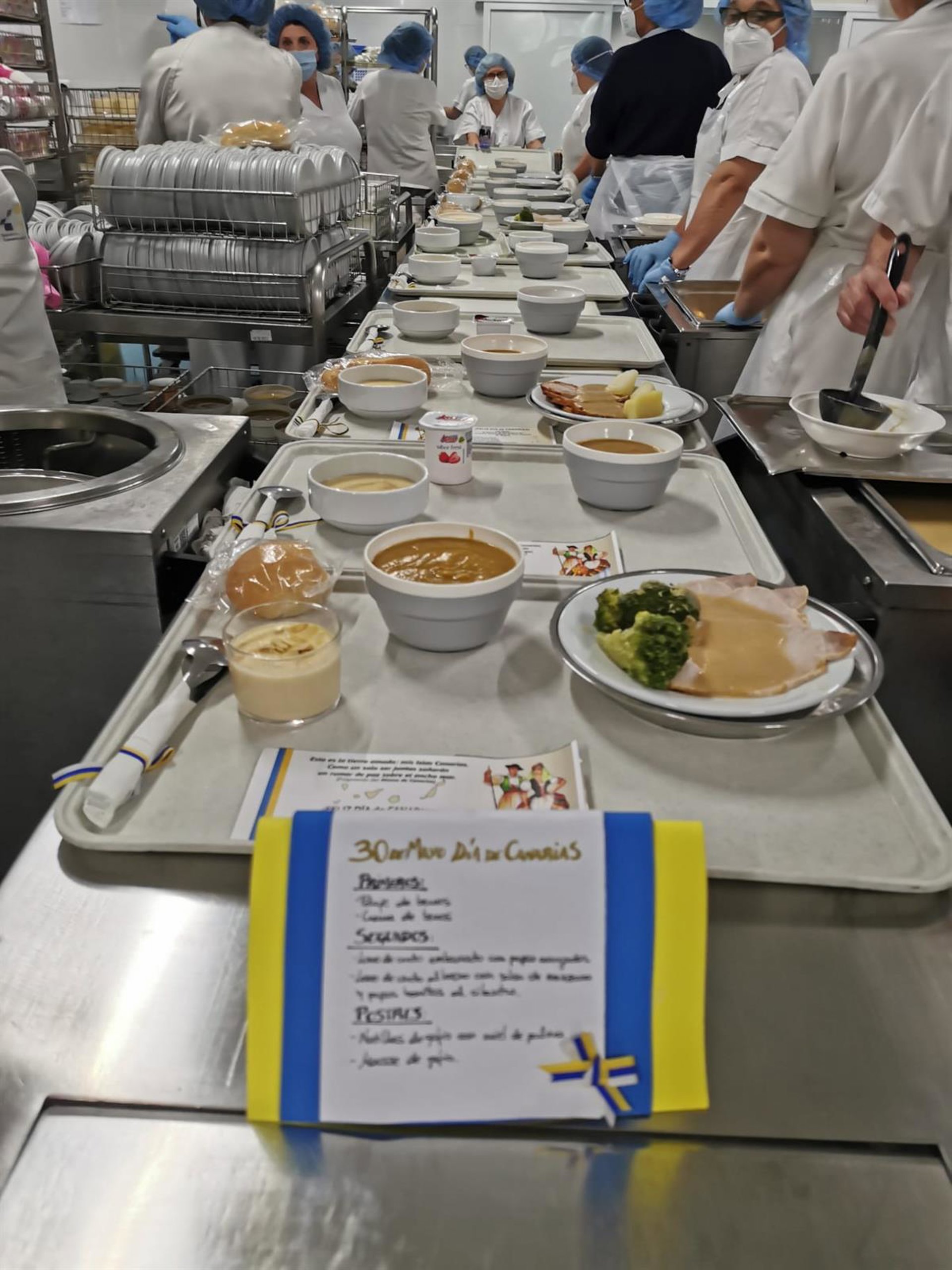Además el Hospital Universitario de La Palma ha elaborado un menú que incluye potaje de verduras, pescado en salsa con boniatos y papas guisadas y rodaja de gofio amasado de segundo, así commo natilla con galleta de postre.