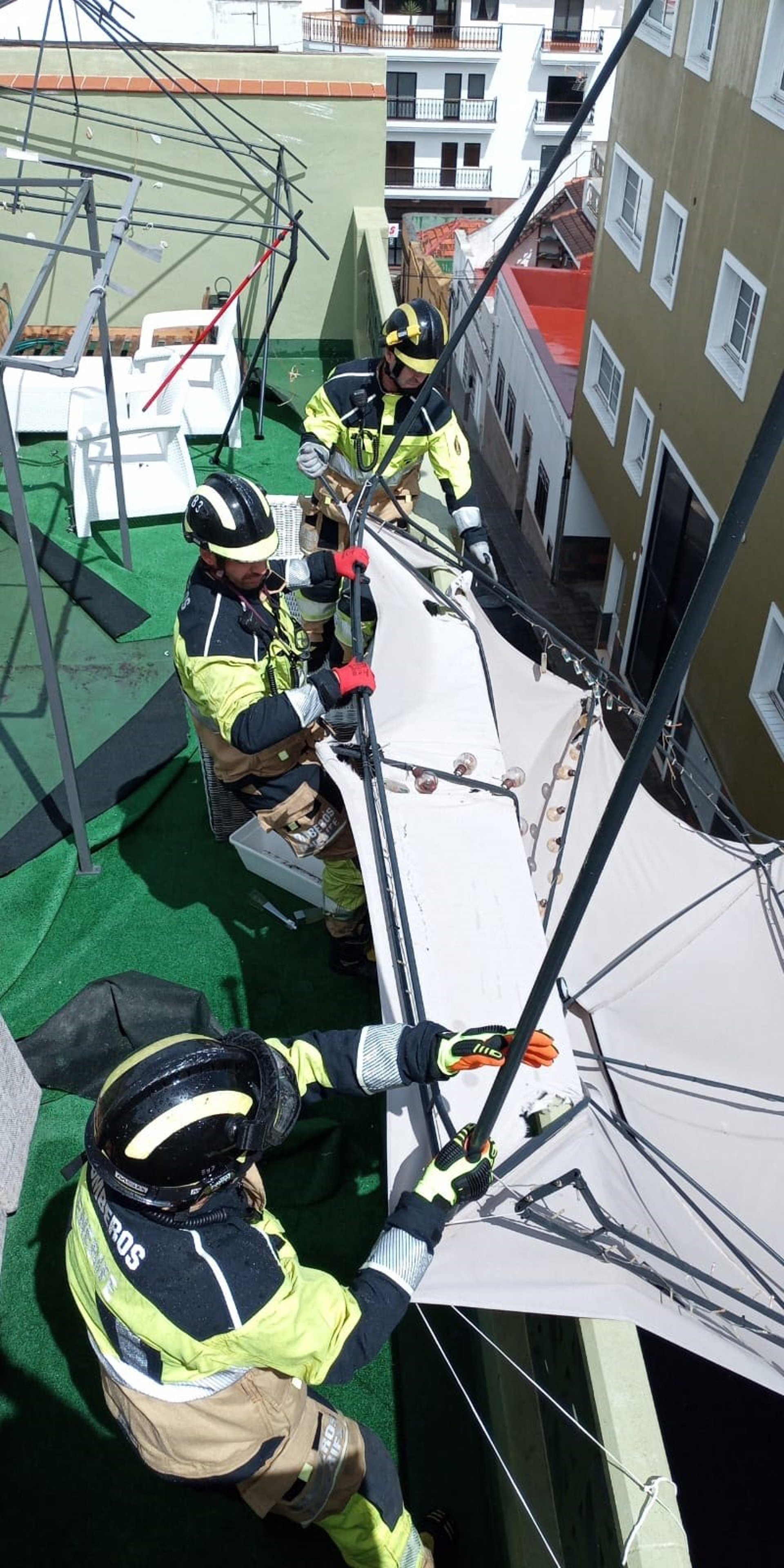 Bomberos intervienen en una pérgola afectada por el paso de la borrasca 'Nuria' - BOMBEROS DE TENERIFE