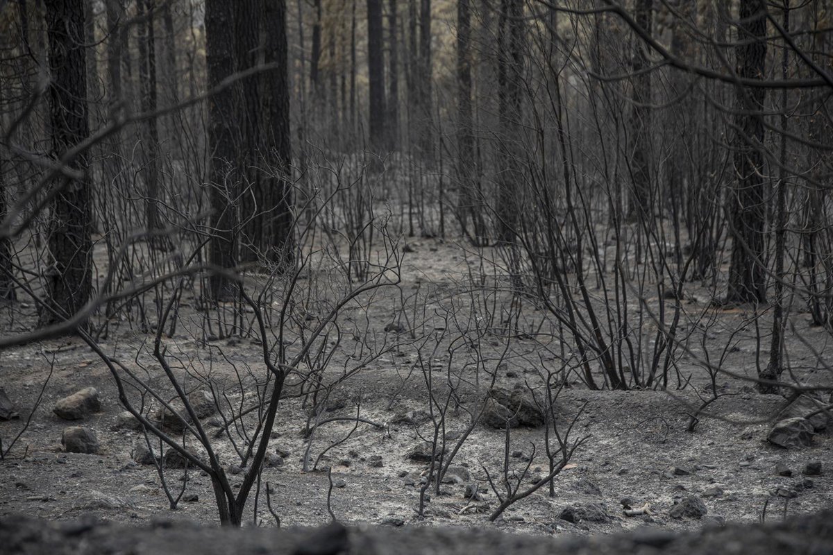 Vegetación afectada por el incendio forestal en el norte de Tenerife, a 24 de julio de 2022, en Tenerife, Santa Cruz de Tenerife, Canarias, (España). El incendio forestal que se declaró el pasado 21 de julio en el norte de Tenerife y que afecta a cinco - Europa Press