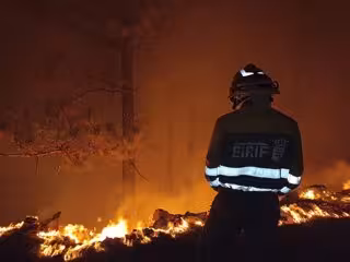 Un efectivo de la EIRIF trabaja en las labores de extinción del incendio de Tenerife durante la noche - GOBIERNO DE CANARIAS