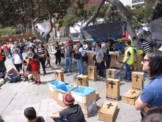 De momento, los acampados siguen en el parque de la capital grancanaria con asambleas, conversaciones, mesas para depositar recomendaciones, actividades lúdicas y también talleres para niños.