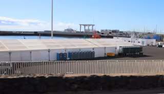La carpa temporal de emergencia instalada por el Gobierno de Canarias en el Muelle de Naos, en Arrecife (Lanzarote), está siendo utilizada como refuerzo en la respuesta que se da por el "desbordamiento" del dispositivo humanitario ante "una nueva oleada de inmigrantes irregulares".