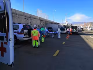 Tras la atención sanitaria realizada en el puerto por efectivos del Servicio de Urgencias Canario y Cruz Roja se decidió al traslado de tres personas al Hospital de La Candelaria, dos de ellos con un traumatismo en la pierna y una quemadura en la cadera.