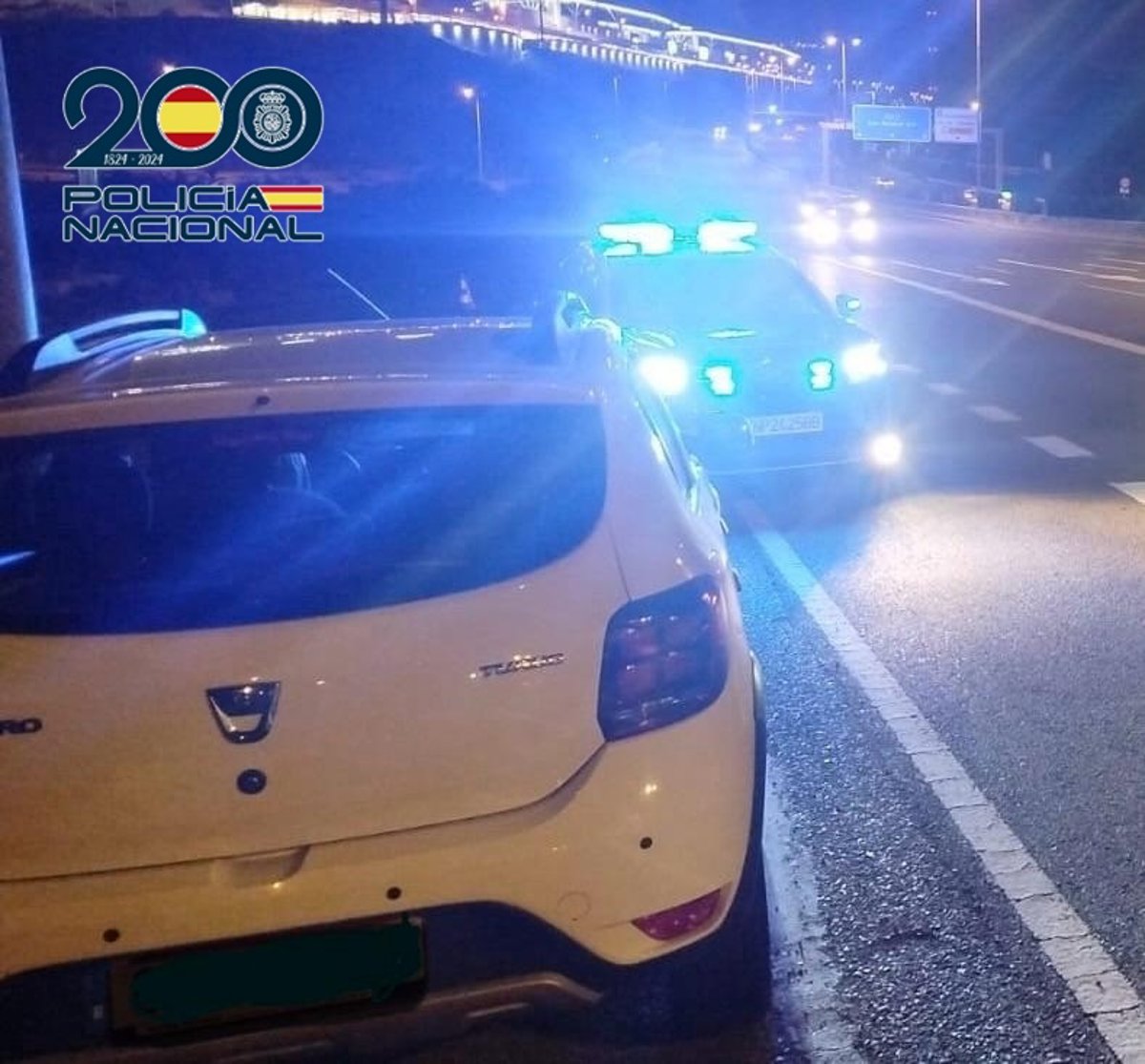 De inmediato, una patrulla policial se dirigió al lugar haciendo uso de los dispositivos acústicos y luminosos logrando localizar al coche en cuestión, que llegó a circular hasta cuatro kilómetros en dirección contraria, ya que fue interceptado al paso del centro comercial Las Terrazas y obligado a detenerse en el arcén de la autovía.