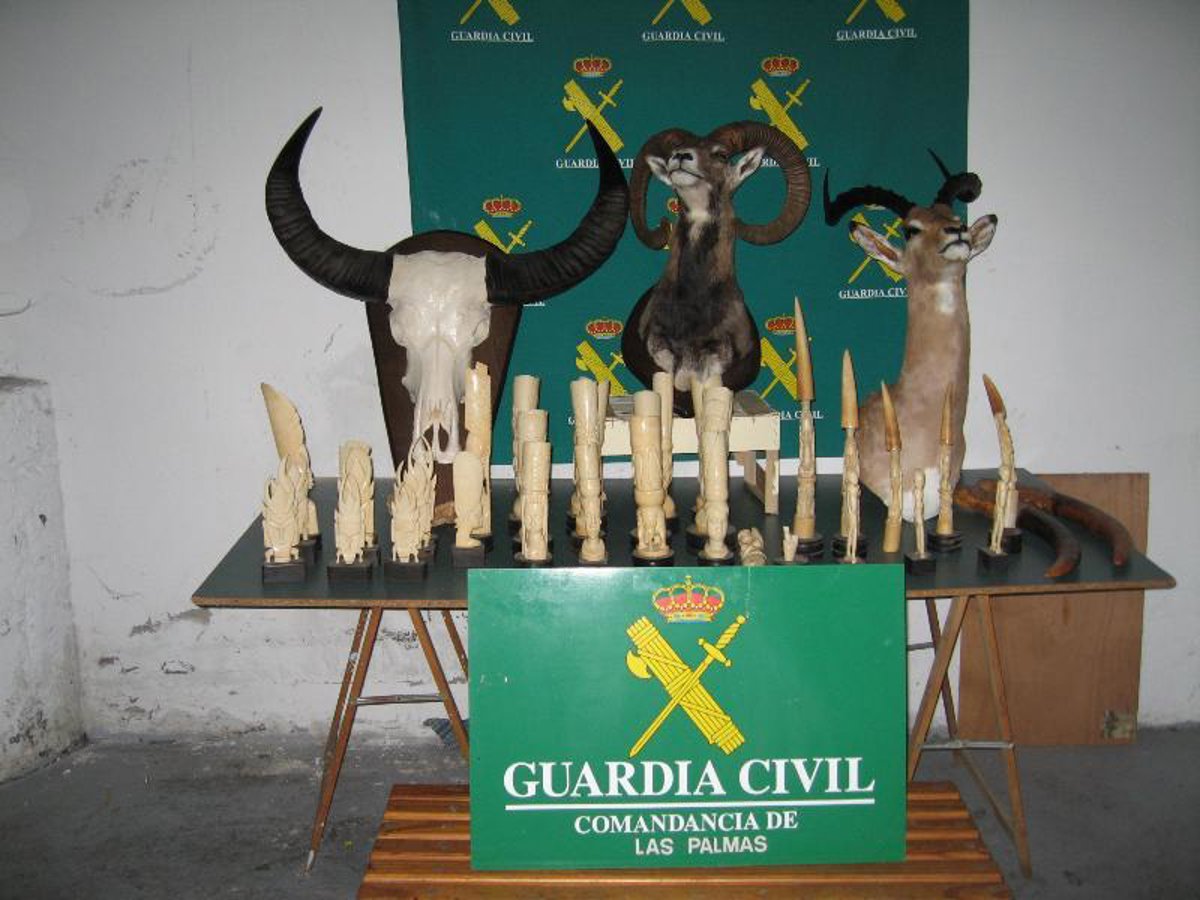 La Guardia Civil ha intervenido en Las Palmas de Gran Canaria un total de 34 piezas de marfil y 3 cabezas de Muflón, Impala y Buckburg, ya que los que portaban tal material a su salida del Puerto de la Luz y Las Palmas no contaban con documentación alguna, según informó hoy la Benemérita en una nota.
