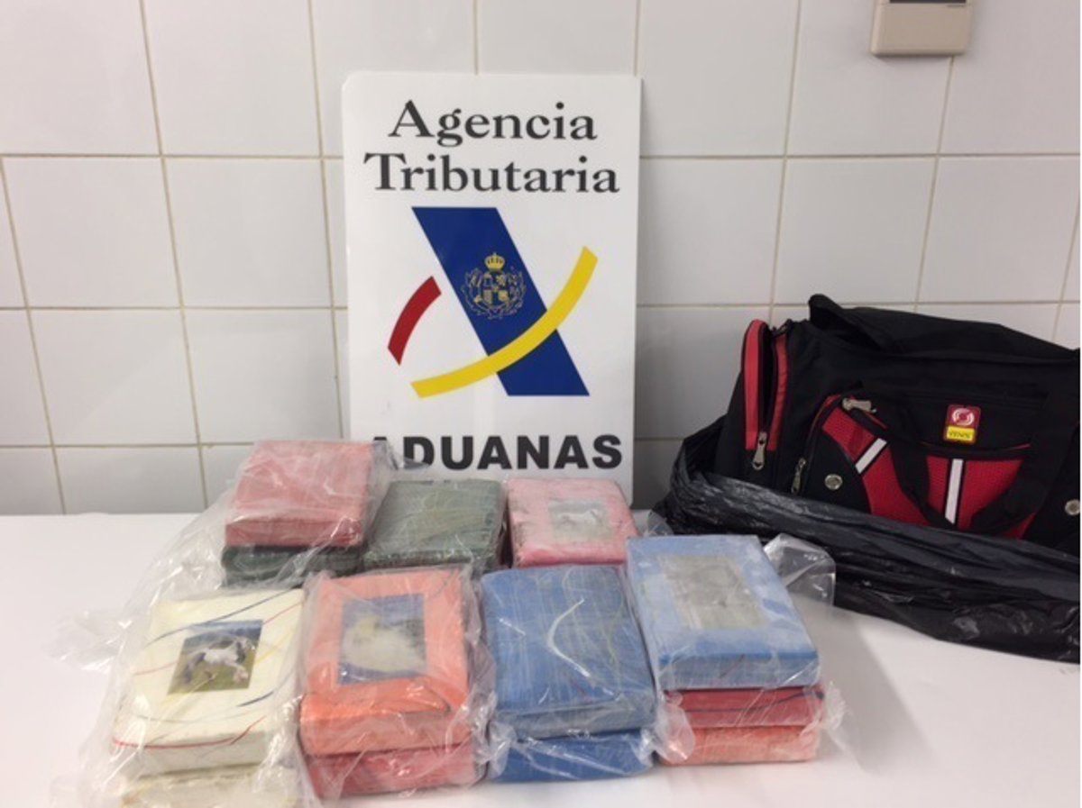 En el interior de los cartones se halló la droga en una bolsa que, a su vez, contenía una mochila con 16 bultos y un peso de 17 kilogramos y 446 gramos de una sustancia que da positivo en el narco-test por cocaína.