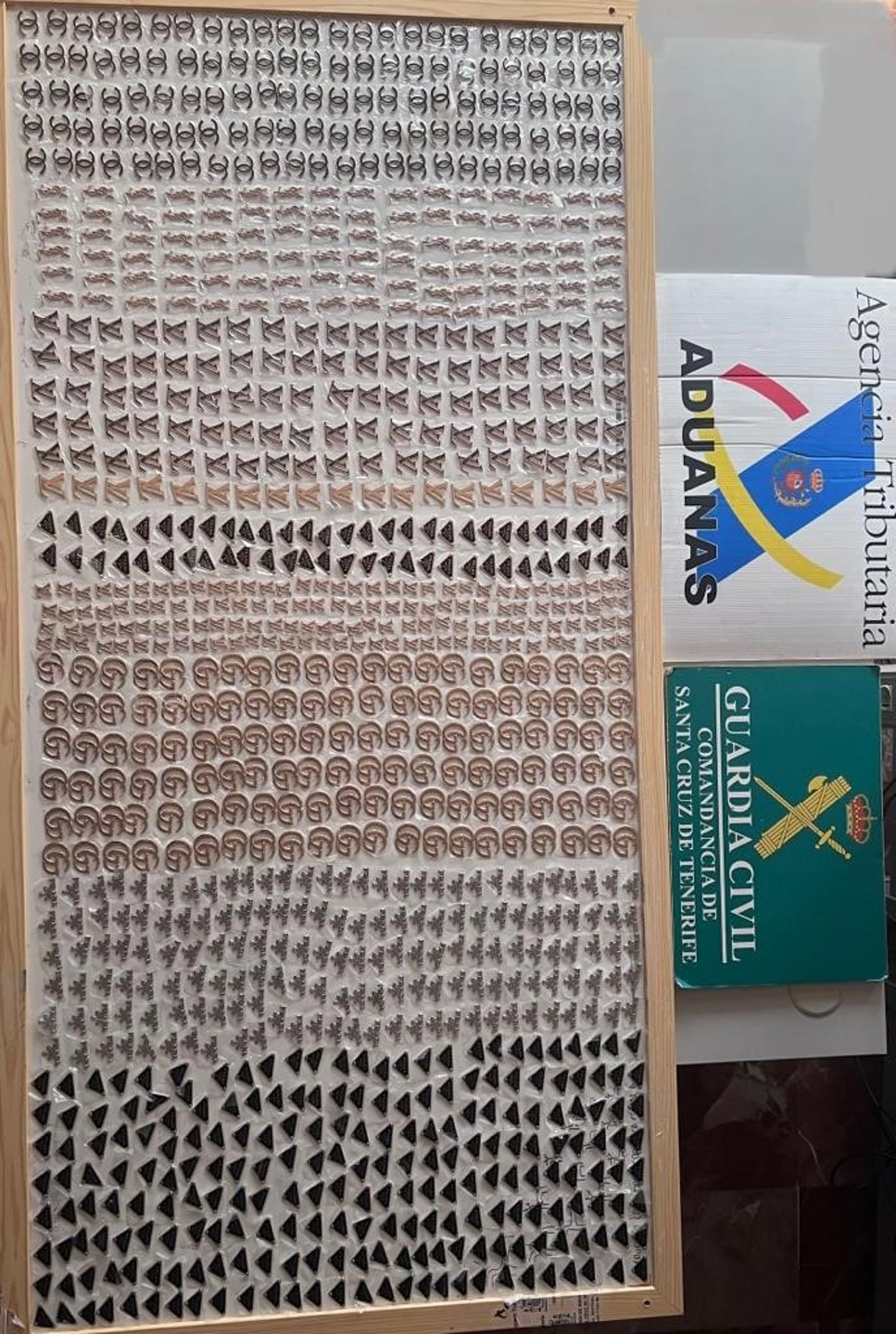 Funcionarios de Vigilancia Aduanera de la Agencia Tributaria y agentes de la Guardia Civil de la Sección Fiscal y Fronteras (UDAIFF) de Santa Cruz de Tenerife, en una operación conjunta, detectaron en el ADT (Almacén de Depósito Temporal) del centro de tratamiento automatizado de Correos un envío que contenía 2.396 emblemas comerciales falsificados de diversas marcas de alta gama.