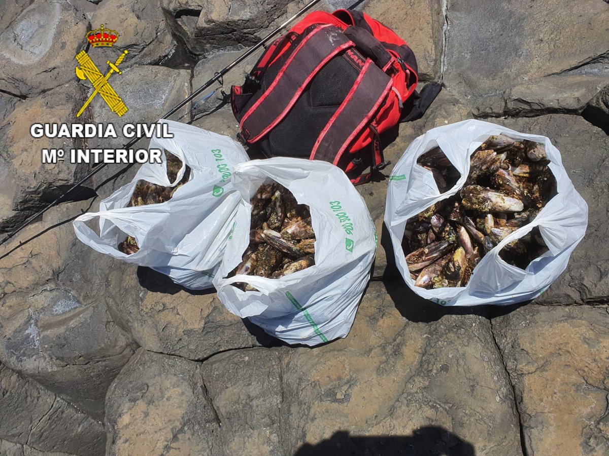 La Guardia Civil de Fuerteventura ha denunciado el 24 de marzo a una persona, con antecedentes por los mismos hechos, por capturar 2,3 kilogramos de mejillón --que está prohibido durante todo el año-- y 4,5 kilogramos de lapas --actualmente prohibida su captura-- en el municipio de la Oliva.