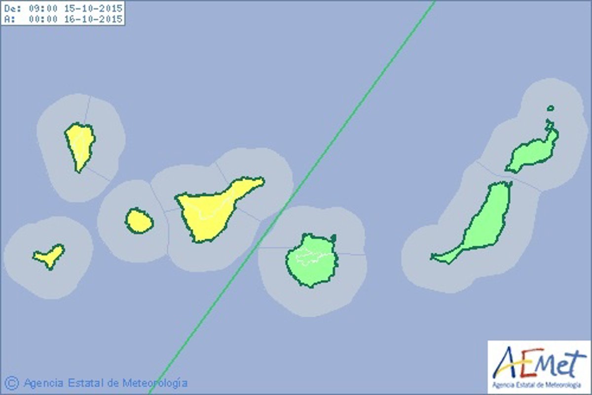 Las islas de la provincia de Santa Cruz de Tenerife se encuentran este jueves en aviso amarillo por lluvias que dejarán hasta 15 litros por metro cuadrado en una hora, con especial intensidad en La Palma, donde se pueden alcanzar los 60 litros en doce horas.