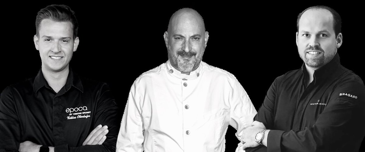 Los tres chefs que participarán en el proyecto gastronómico de Kentia 'Fogones con estrellas': Néstor Freiría, Tristán Brandt y Niklas Oberhofer - KENTIA