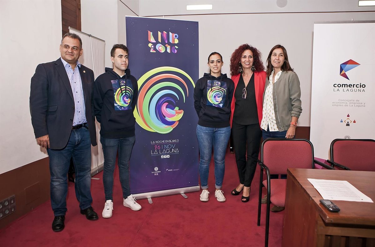 La presentación del cartel de La Noche en Blanco, que ha tenido lugar este martes, ha contado con la asistencia del alcalde de La Laguna, José Alberto Díaz; la concejal de Economía, Empresa y Empleo, María José Castañeda, y de Servicios Municipales y Participación Ciudadana, Mónica Martín.