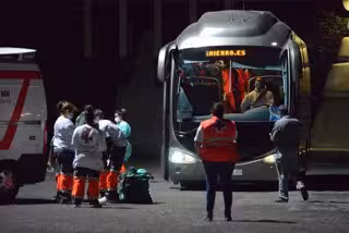 Archivo - Los migrantes suben a un autobús, después de ser atendidos por efectivos sanitarios del Servicio de Urgencias Canario (SUC) y Cruz Roja, en el muelle de La Restinga tras ser rescatados de una patera, a 23 de agosto de 2021, en la isla de El Hier - Europa Press - Archivo