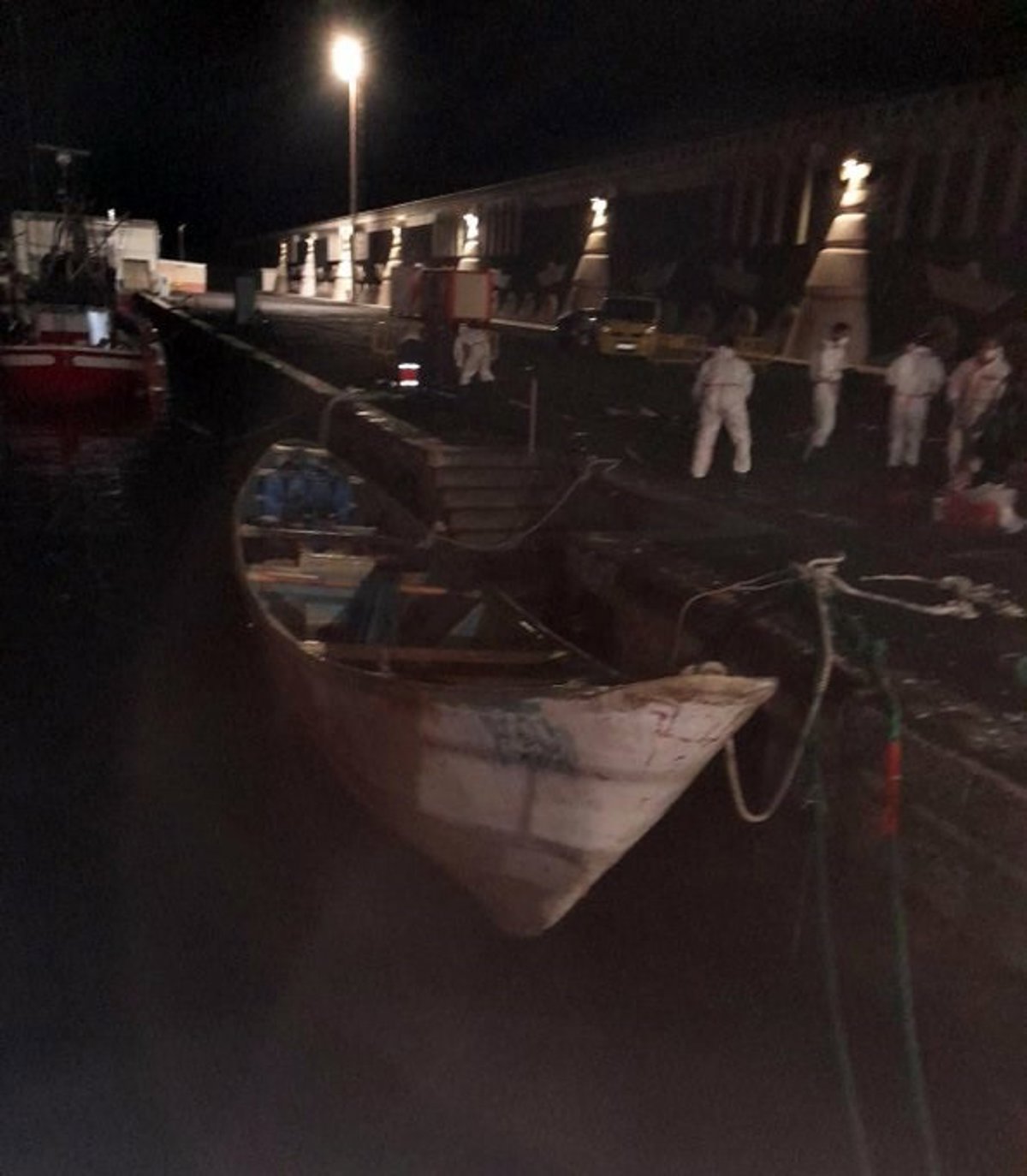 En el muelle se desplegó un dispositivo sanitario formado por personal del Servicio de Urgencias Canario (SUC), Atención Primaria y voluntarios de Cruz Roja, apoyados por las fuerzas de seguridad. Dos de los ocupantes del cayuco tuvieron que ser trasladados al Hospital Ntra. Sra. de los Reyes al presentar hipotermia de carácter moderado.