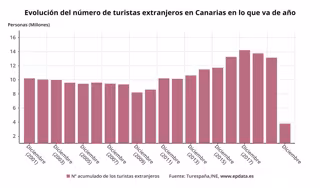 Evolución de turistas extranjeros llegados a Canarias - EUROPA PRESS