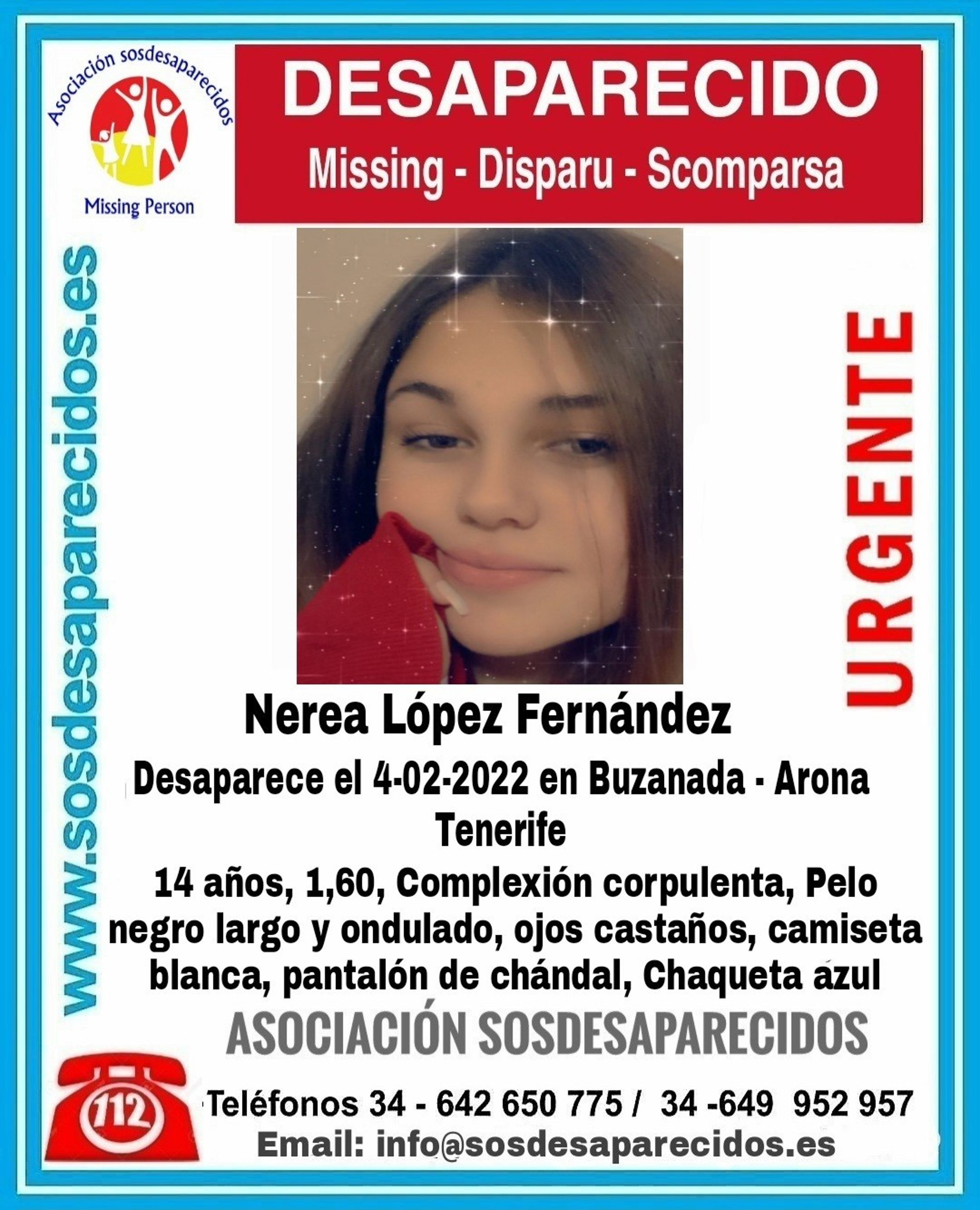 Cartel de búsqueda de la menor Nerea López, localizada este lunes en La Laguna - SOS DESAPARECIDOS