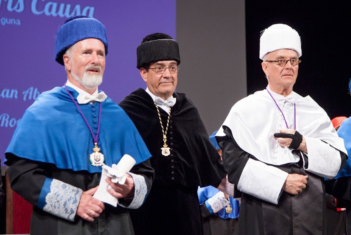 El último en intervenir fue el rector de la ULL, Antonio Martinón, quien dio una explicación a quienes pudiera sorprender que se invistiera conjuntamente a dos personalidades de campos tan alejados.