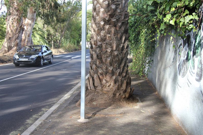 Los vecinos comentan que sólo un tramo de la calle, de algo más de 100 metros, cuenta con acera; sin embargo, advierten que resulta muy difícil caminar y más aún transitar con cochecitos o sillas de ruedas, dado que en el centro se han plantado palmeras y otros árboles que ocupan casi todo el ancho, lo que obliga en muchas ocasiones a tener que bajar de la acera mientras pasan coches u otros vehículos. También este hecho ha provocado caídas, como la de una mujer que se hace un par de semanas estuvo a punto de fracturarse una costilla.