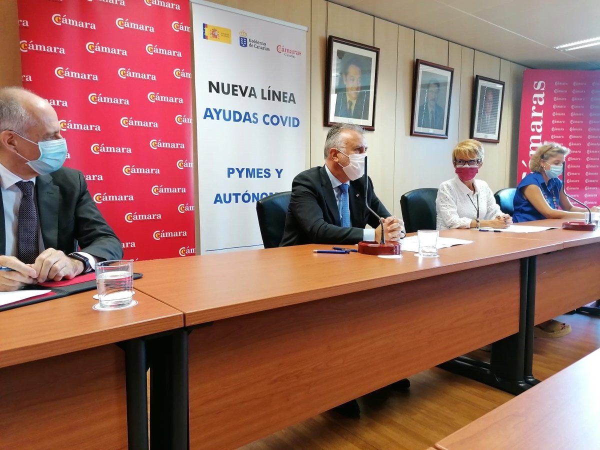 El acto, que también contó con el director general de Promoción Económica, Laureano Pérez, y la directora general de la Cámara de Comercio, Lola Pérez, sirvió además para conocer el trabajo de colaboración que presta esta entidad en la gestión de las líneas de ayudas COVID-19.