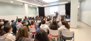 Los jóvenes estudiantes bilbaínos interactuando durante la charla de Sebastián Quintana - CANARIAS, 1500 KM DE COSTA