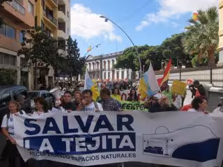 Bajo el lema 'Salvar La Tejita', la manifestación salió pasadas las doce y media del mediodía desde la Plaza Weyler en dirección a la Plaza de España, donde se leyó un manifiesto con el que se quiso dejar patente que este proyecto supone un "atentado medioambiental" contra un espacio natural que consideran "un hábitat único en Tenerife".