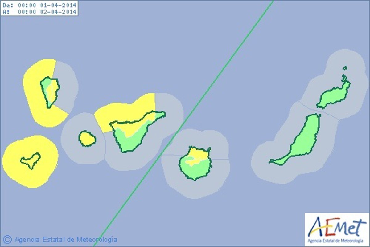 Asimismo, los fuertes vientos, que podrían tener rachas de 75 kilómetros por hora, afectarán en cumbres y Este de La Palma, El Hierro, La Gomera, Norte de Tenerife, así como en cumbres y Norte de Gran Canaria.