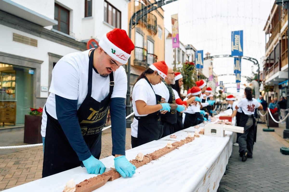 El municipio de Mogán (Gran Canaria) elaboró durante la jornada de ayer sábado un turrón de chocolate de 200 metros de largo gracias al impulso del Ayuntamiento en colaboración con Tirma, el cocinero Aridane Rivero, el pastelero Yeray Reyes y el CIFP Felo Monzón Grau Bassas.