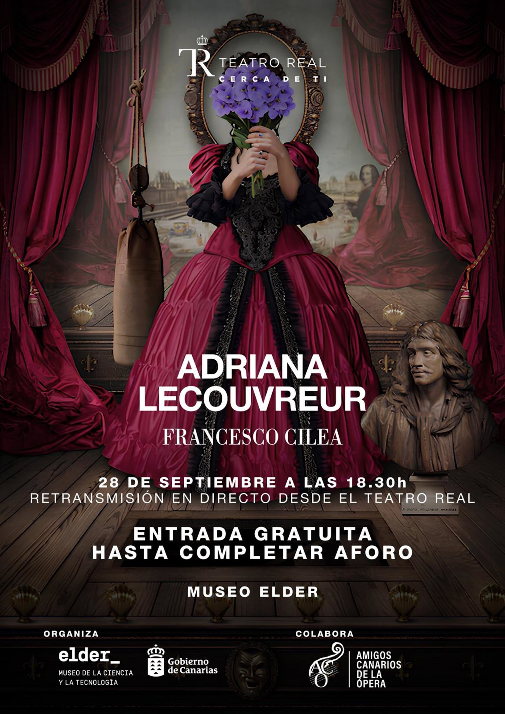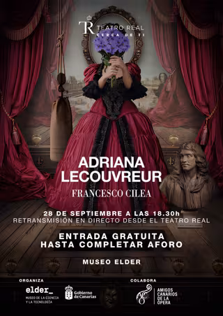 La función de 'Adriana Lecouvreur' podrá verse en Canarias en la pantalla gigante del Cinemax del Museo Elder y será retransmitida en directo hoy sábado desde las 18.30 horas en el Museo Elder con entradas gratuitas hasta completar el aforo. Las entradas podrán retirarse en las propias instalaciones del Museo desde las 10.00 horas y el evento cuenta con la colaboración de la asociación Amigos Canarios de la Ópera.