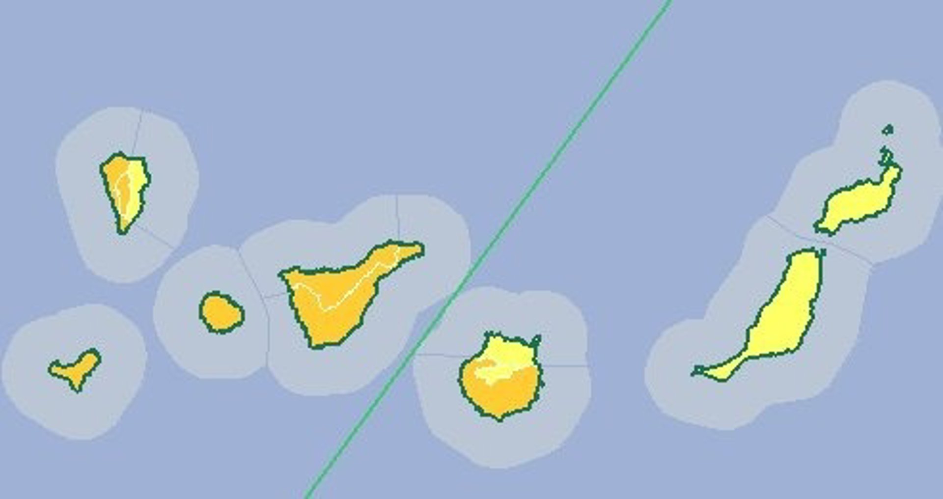 Según la previsión de la Aemet, el aviso naranja seguirá afectando estos días al oeste y cumbres de La Palma; El Hierro; La Gomera; Tenerife; Este, Sur y Oeste de Gran Canaria, y se amplía a Lanzarote y Fuerteventura. Asimismo, el Este de La Palma y Norte de Gran Canaria seguirán en aviso amarillo.