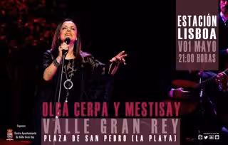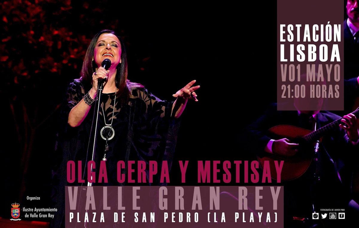 La Plaza de San Pedro de Valle Gran Rey (La Gomera) acoge este viernes a las 21.00 horas un concierto de Olga Cerpa y Mestisay, donde presentarán su nuevo trabajo discográfico, titulado 'Estación Lisboa'.