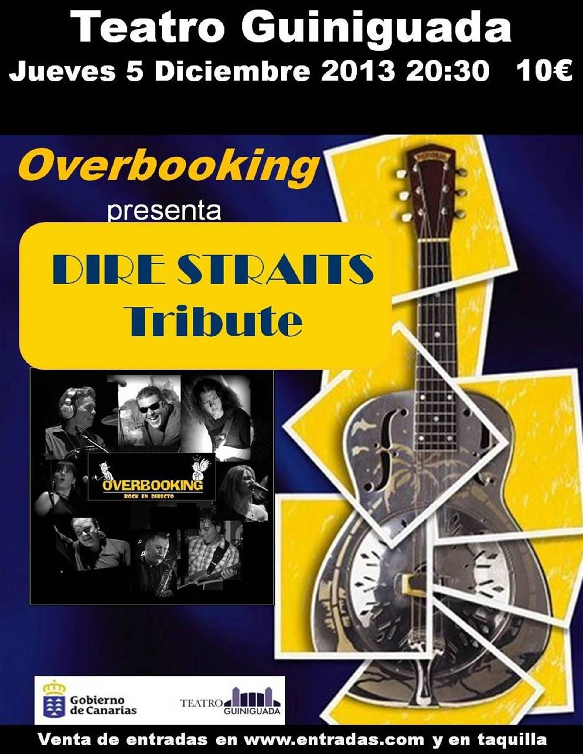 Overbooking rendirá tributo a Dire Straits este jueves, 5 de diciembre, en el Teatro Guiniguada de Las Palmas de Gran Canaria, a las 20.30 horas.