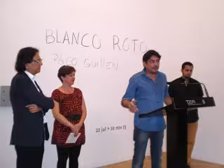 Tenerife Espacio de las Artes (TEA) ha presentado este lunes en 'Área 60' la exposición 'Blanco roto', del creador grancanario Paco Guillén, donde se ofrece una intervención mural en la que "se sacan a relucir las heridas adheridas al espacio" y que "rompe el blanco de la pared con esfuerzo corporal".